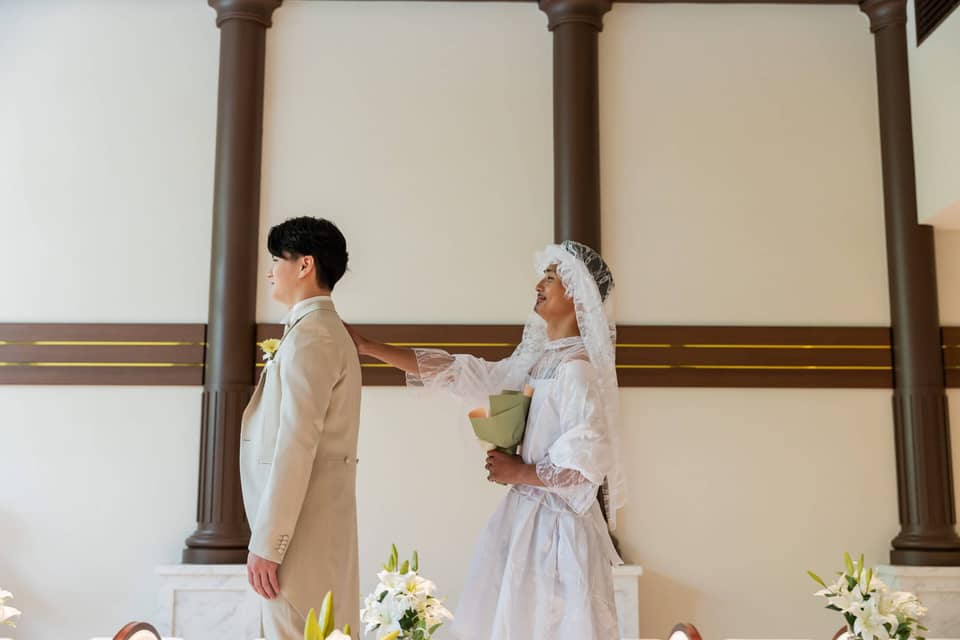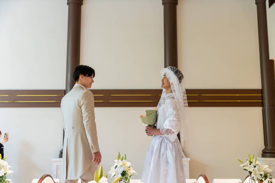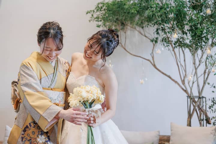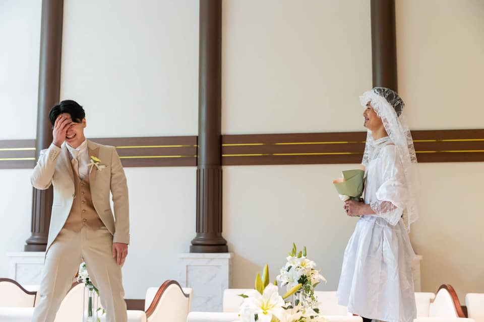 挙式前に新婦に扮して登場してくださったご友人に