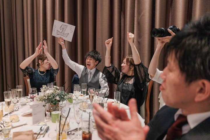 パーティーの後半はカラードレスの色当てクイズや