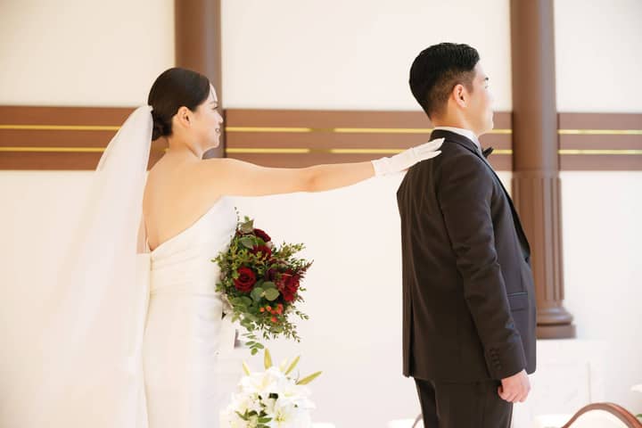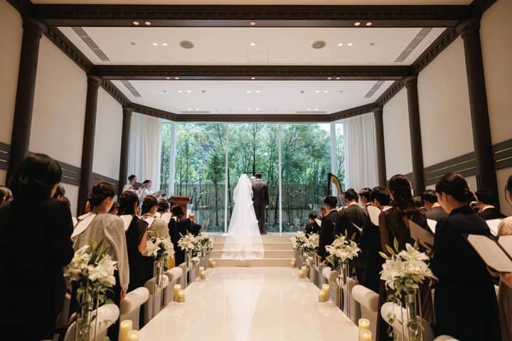 挙式はキリスト教式で厳かに執り行われました。