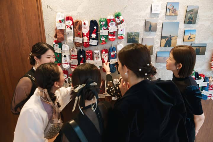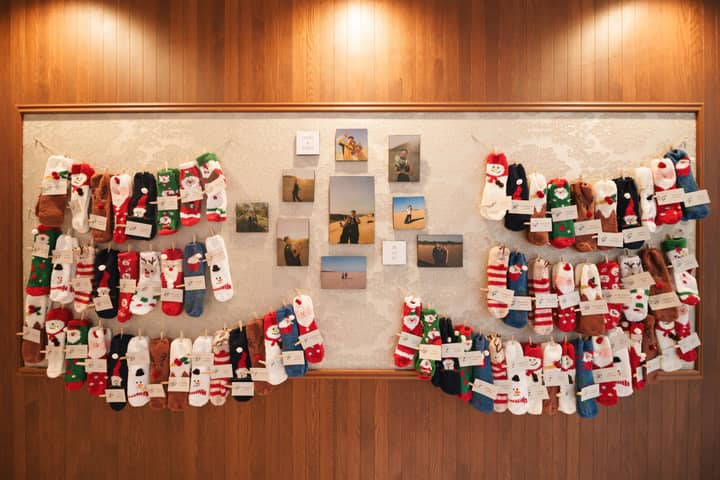 一人ひとり異なるデザインの靴下が吊り下げられ、