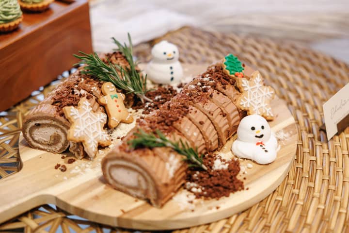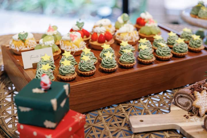 サンタやツリーをモチーフにしたスイーツがずらりと並び、