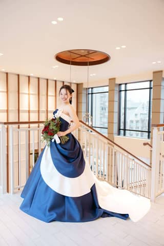 ネイビー×ホワイトの大人可愛いドレスにチェンジ。