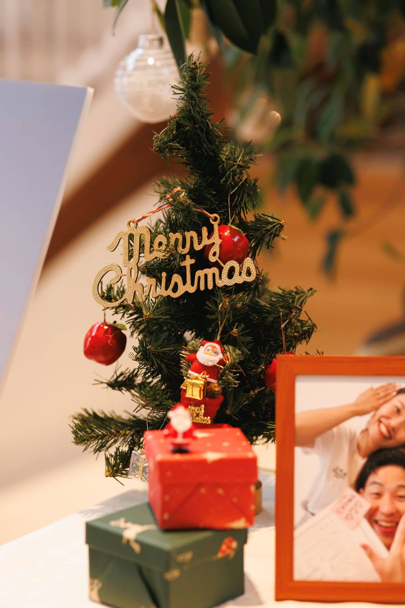 クリスマスモチーフの小物が並ぶウェルカムスペース。