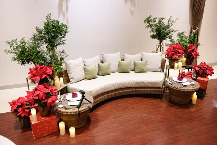 披露宴会場は、ポインセチアを取り入れた